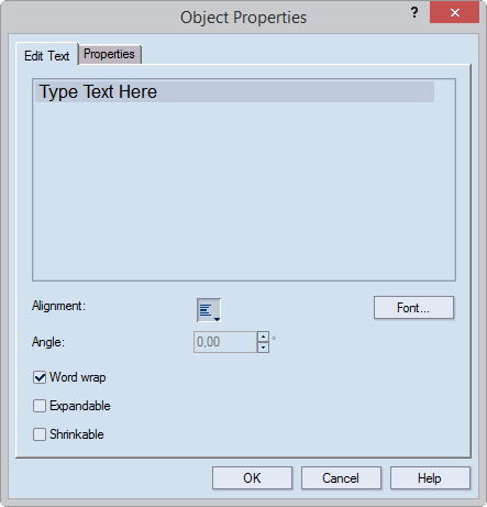 TIP: To make the text always fill up the text area and resize accordingly as you change the rectangle, select both the Expandable and Shrinkable check boxes.