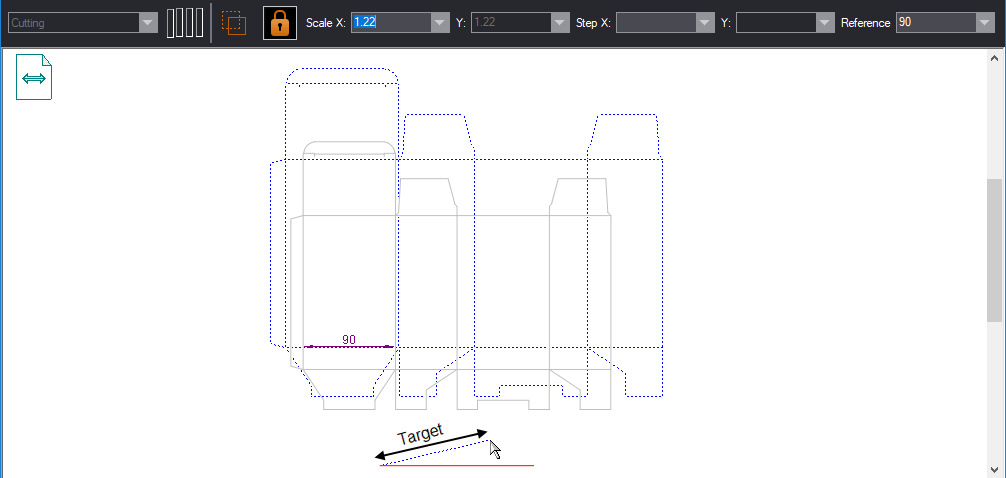 Scaling by a reference is most often applied when you want an object or distance — called reference — from a selection to adopt the length of another object or distance — called target. You do so by: