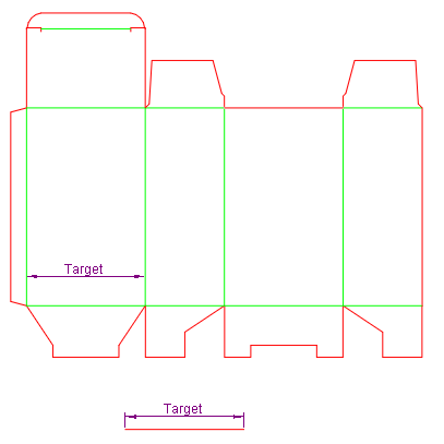 The program has extracted the target distance and applied a scaling factor to the selected shape — calculated according to the target/reference formula.