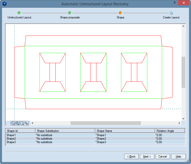 The Automatic Unstructured Layout Recovery wizard displays the 1Up Drawings page.