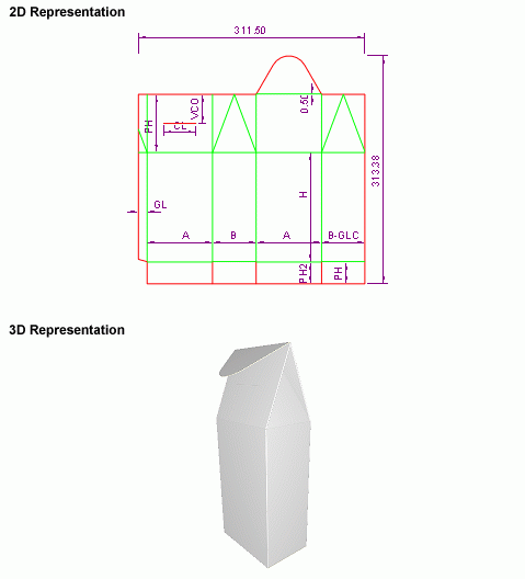 A12.75.03.03 Four Reduced Flaps Closure - Gable-Top Closure with Locking Flap