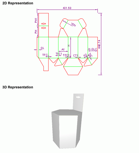 C10.40.60.21 Six-Cornered Prism - Auto Closure (Auto Bottom) - Tuck-In Flap Closure with Extended Panel