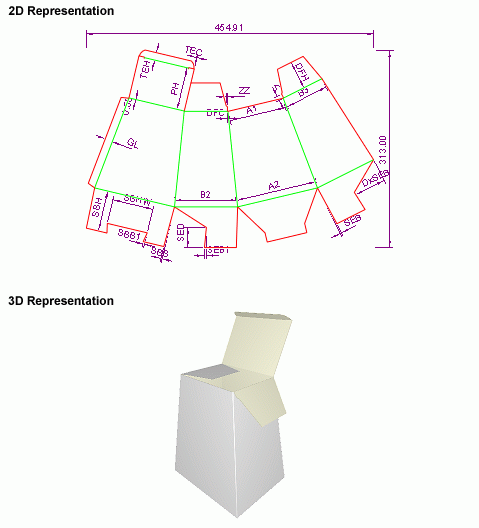 C20.20.55.20 Four-Cornered Truncated Pyramid - Self-Locking Envelope Closure - Tuck-In Flap Closure