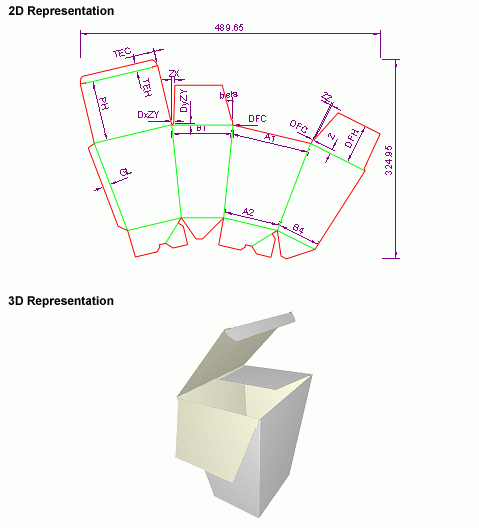 C20.20.60.20 Four-Cornered Truncated Pyramid - Auto Closure (Auto Bottom) - Tuck-In Flap Closure