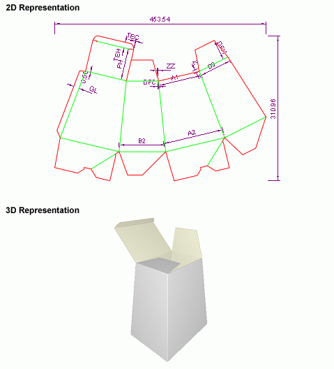 C20.20.60.20 Four-Cornered Truncated Pyramid - Auto Closure (Auto Bottom) - Tuck-In Flap Closure