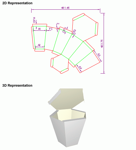 C20.40.20.20 Six-Cornered Truncated Pyramid - Tuck-In Flap Closure - Tuck-In Flap Closure
